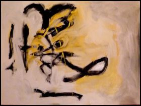 120cmX90cm Überwiegend gelb, rosa, schwarz Acryl und Disperion auf Leinwand gemalt 2016 Entwicklung Malerei 1 das sah mir zu sehr wie eine Ratte oder Maus aus